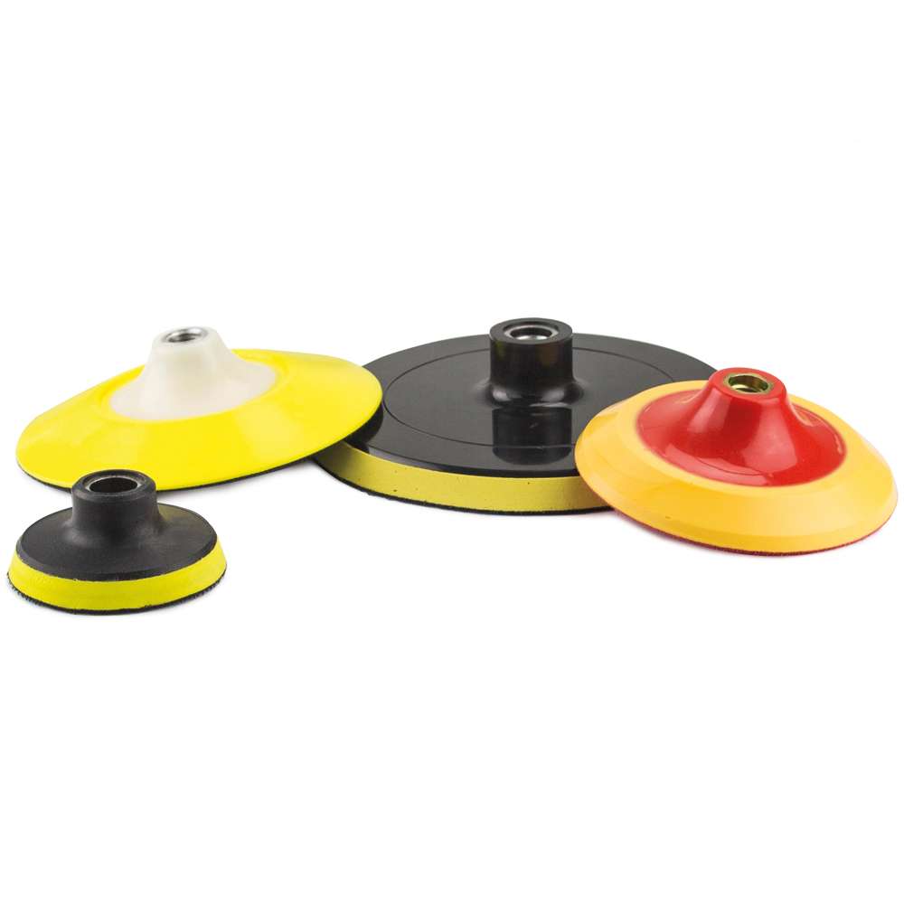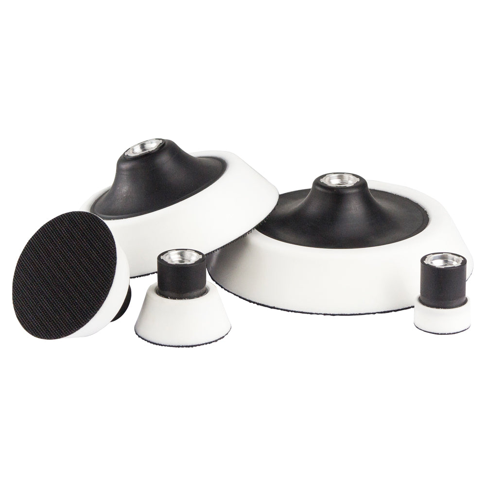 Cuscinetto di supporto con chiusura in velcro. Adatto a tutte le lucidatrici con filettatura M14. Con base in morbida schiuma PUR per un'eccellente flessibilità e uno scorrimento fluido.