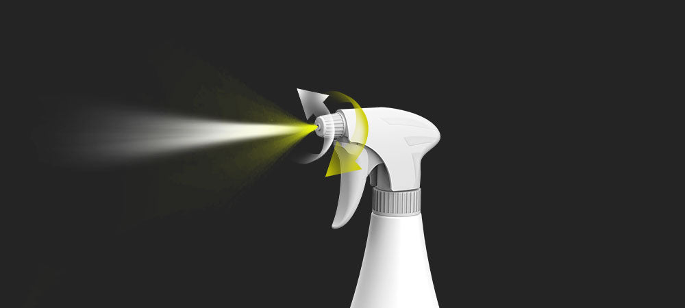 Gli ugelli dei nostri spruzzatori hanno una regolazione graduale dell'angolo di spruzzo da un getto molto ampio a un getto singolo.